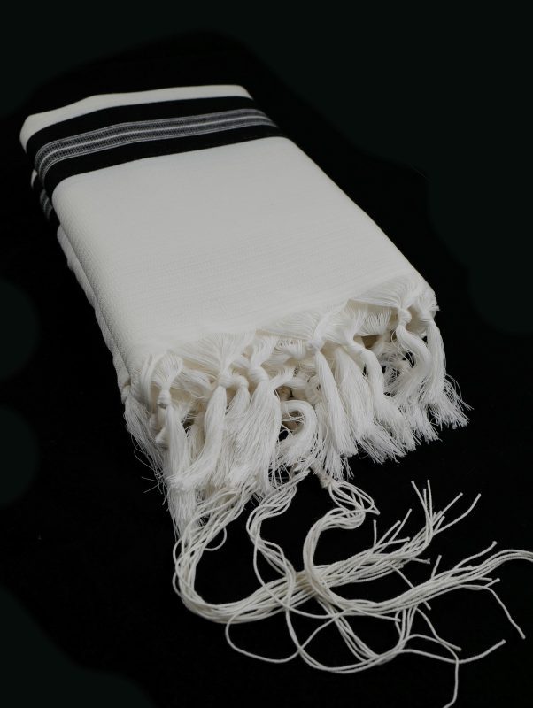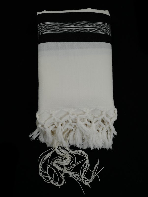 $78.99 – $138.99Price range: $78.99 through $138.99White-striped designed 100% wool tallit with Jacquard Atara Style: JWS